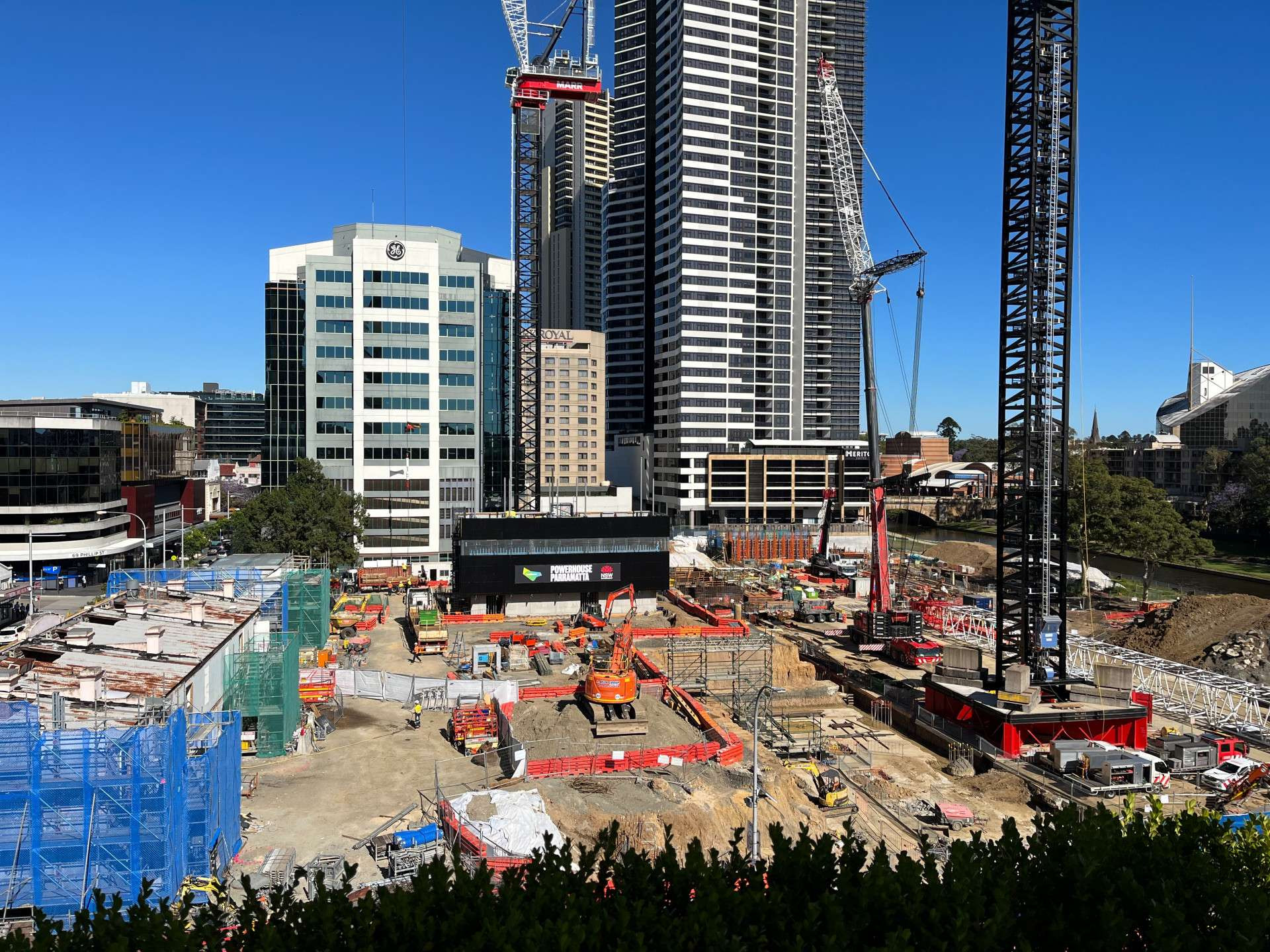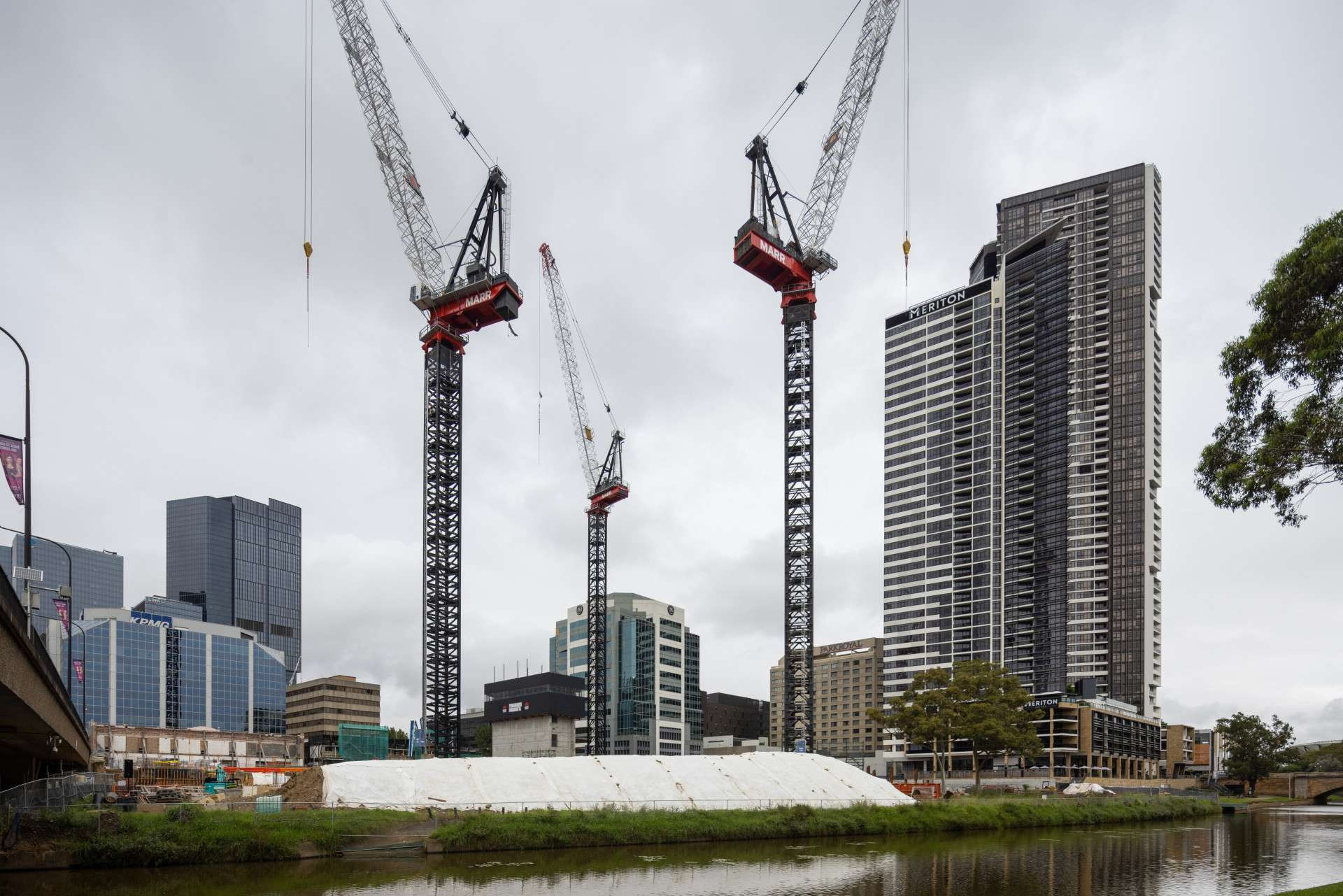 120 metre Tower Crane 3 installed, a Favelle Favco M2480D which is as tall as a 50-storey building and the largest capacity tower crane in the world, lifting up to 330 tonnes in a single lift.