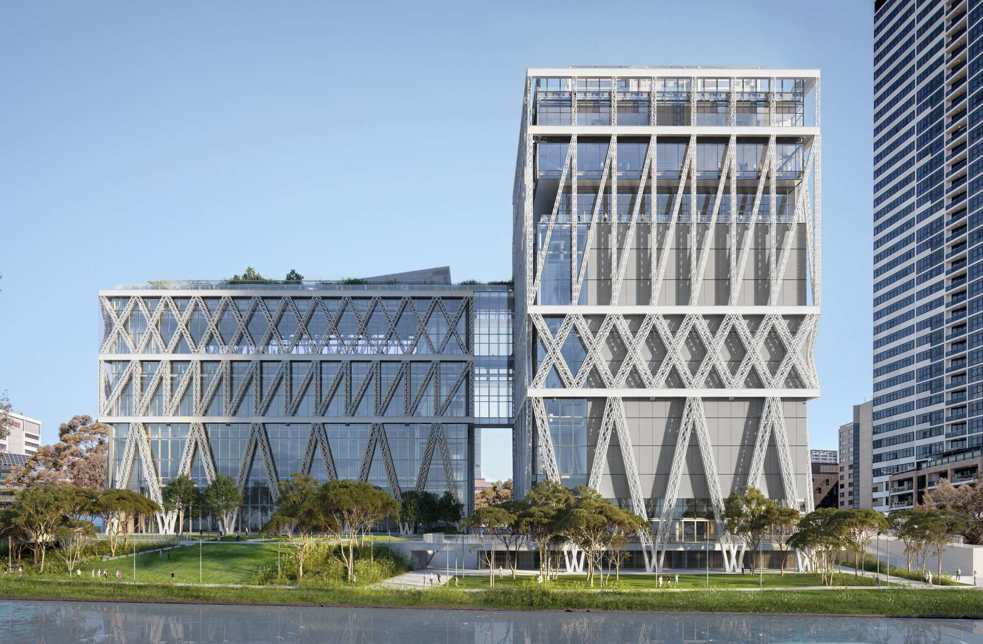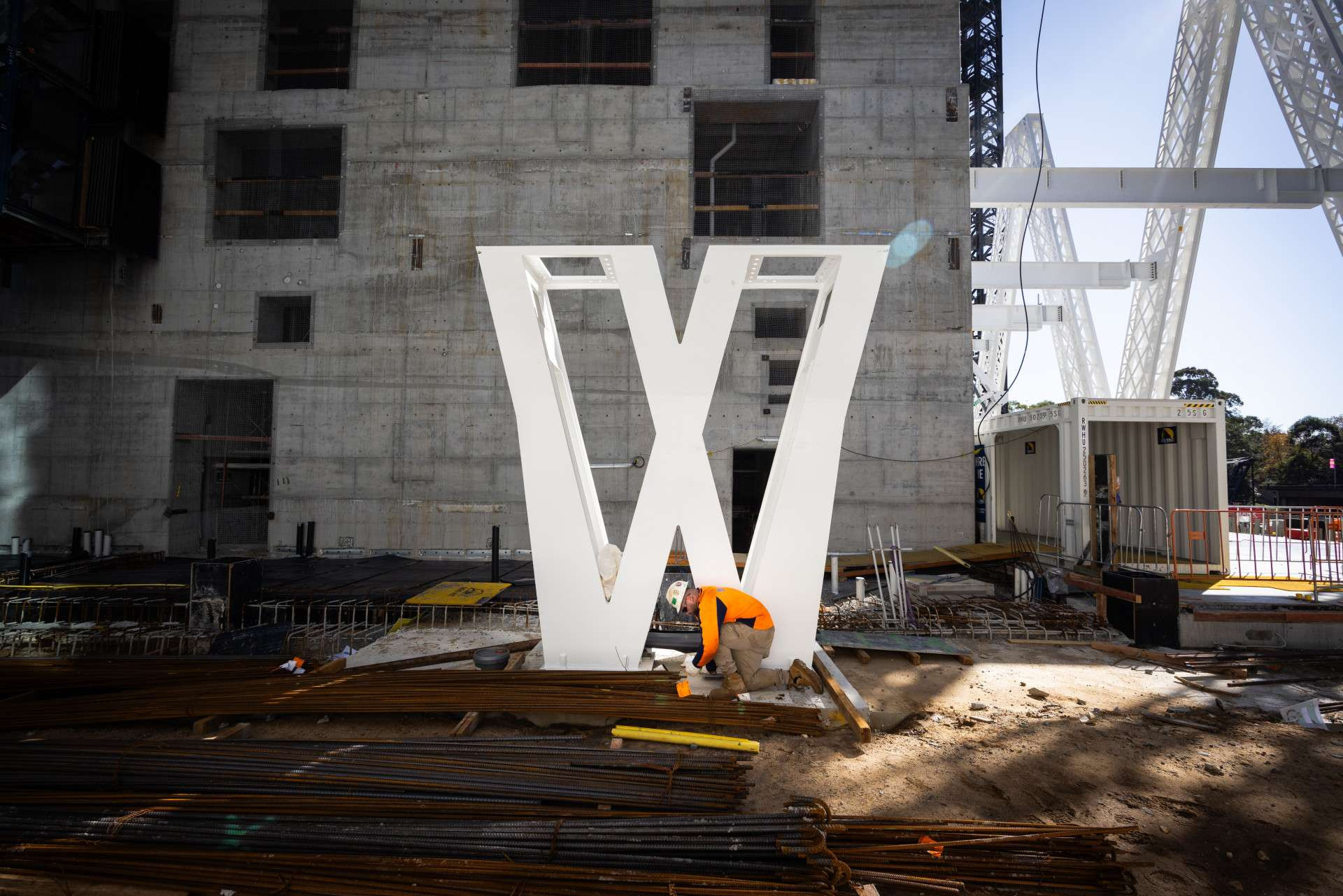 Exoskeleton installation. The Powerhouse Parramatta exoskeleton is made up of over 1,300 individual pieces of steel ranging from 4 metres in height to over 20 metres.