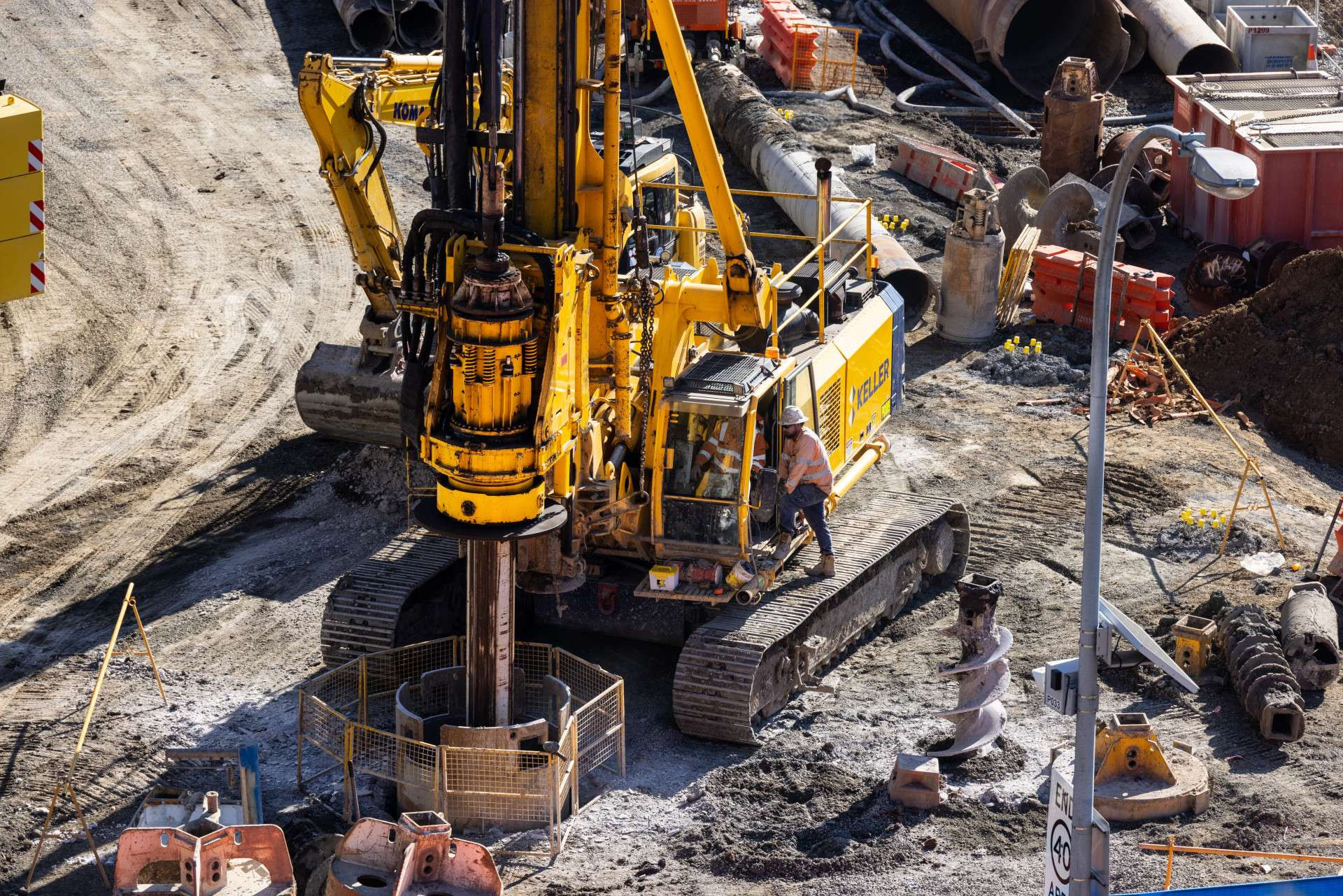 Approximately 35,000 tonnes of soil moved off-site and 230 piles drilled and installed to support the foundations for the building.